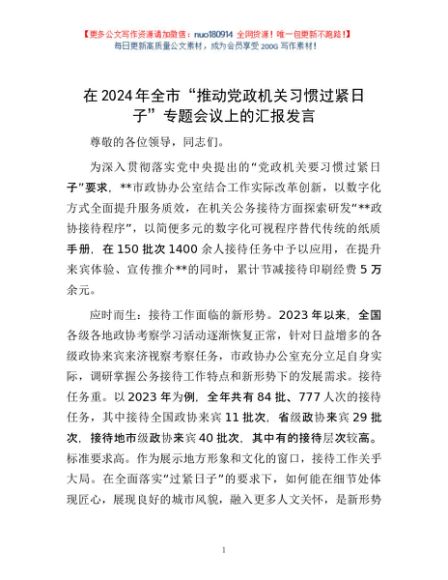 / 在2024年全市“推动党政机关习惯过紧日子”专题会议上的汇报发言