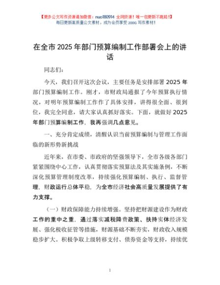 / 在全市2025年部门预算编制工作部署会上的讲话