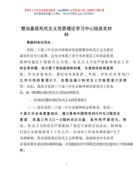 / 整治基层形式主义党委理论学习中心组发言材料