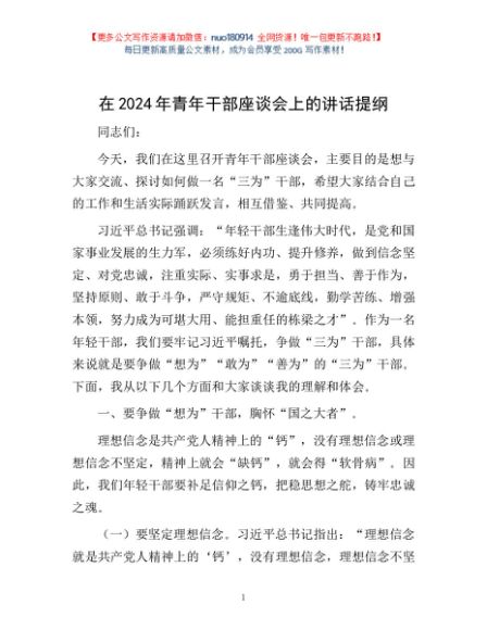 / 在2024年青年干部座谈会上的讲话提纲