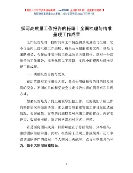/ 撰写高质量工作报告的秘籍|全面梳理与精准呈现工作成果
