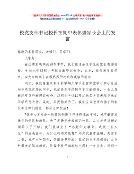 / 校党支部书记校长在期中表彰暨家长会上的发言