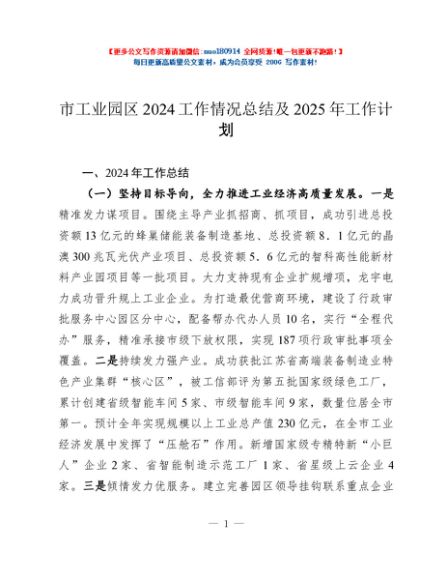 / 市工业园区2024工作情况总结及2025年工作计划