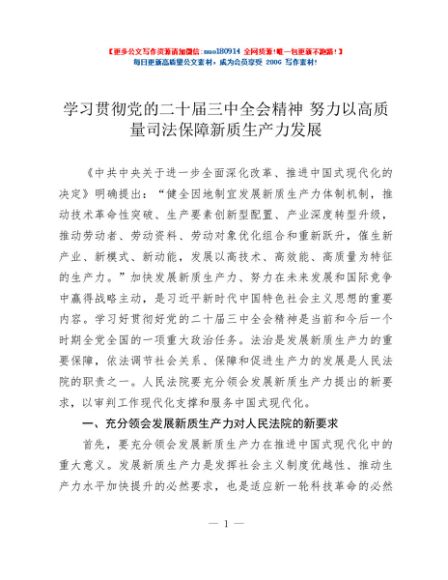 / 学习贯彻党的二十届三中全会精神 努力以高质量司法保障新质生产力发展