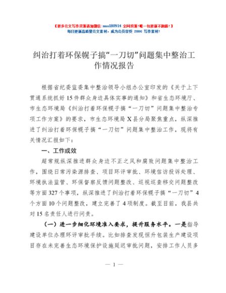 / 纠治打着环保幌子搞“一刀切”问题集中整治工作情况报告