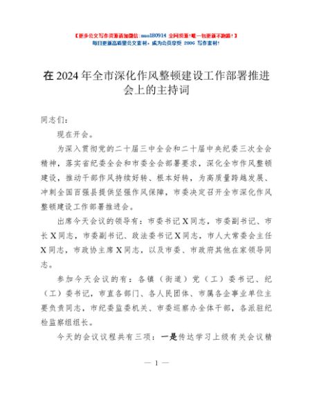 / 在2024年全市深化作风整顿建设工作部署推进会上的主持词