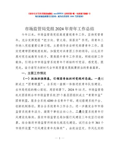 / 市场监管局党组2024年青年工作总结