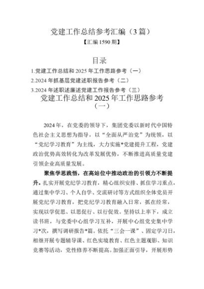 / 汇编1590期-党建工作总结参考汇编(3篇)