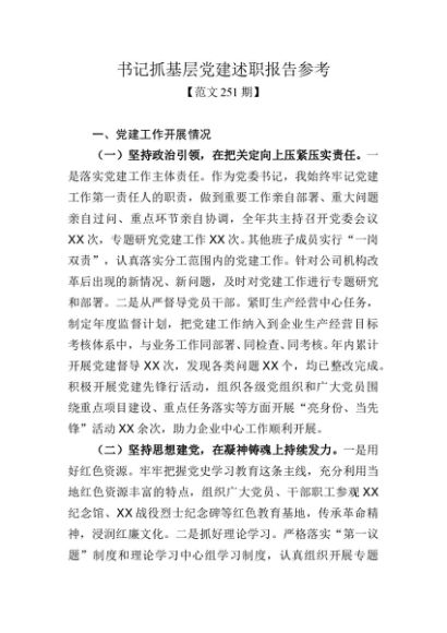 / 范文251期-书记抓基层党建述职报告参考