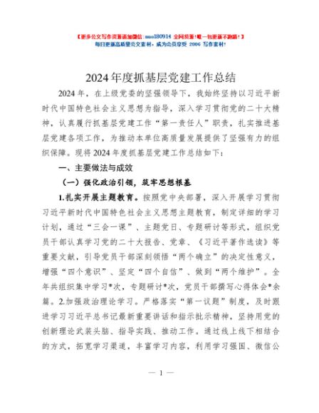 / 2024年度抓基层党建工作总结