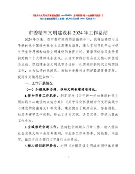 / 市委精神文明建设科2024年工作总结