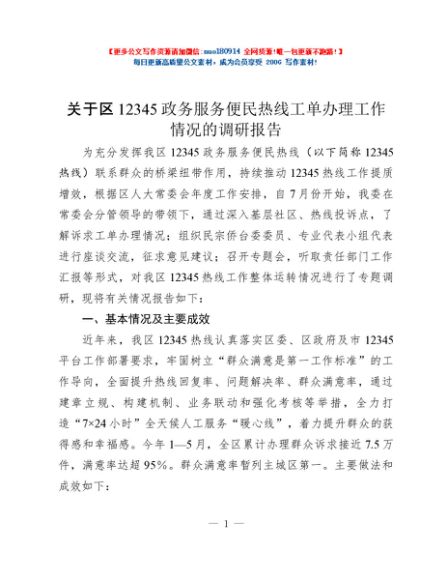 / 关于区12345政务服务便民热线工单办理工作情况的调研报告