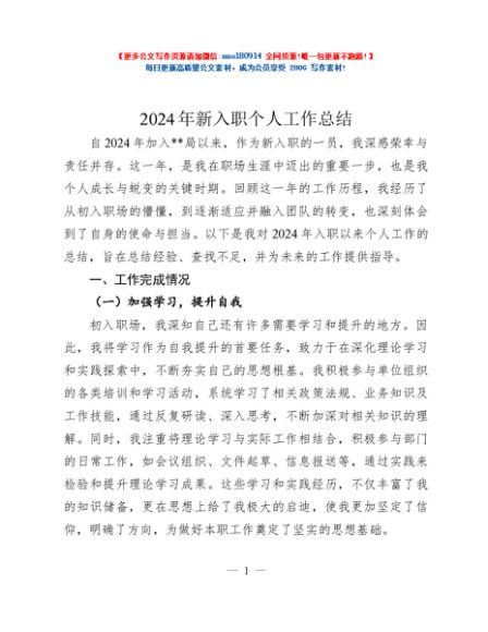2024年新入职个人工作总结【更多资料+微信:nuo180914】