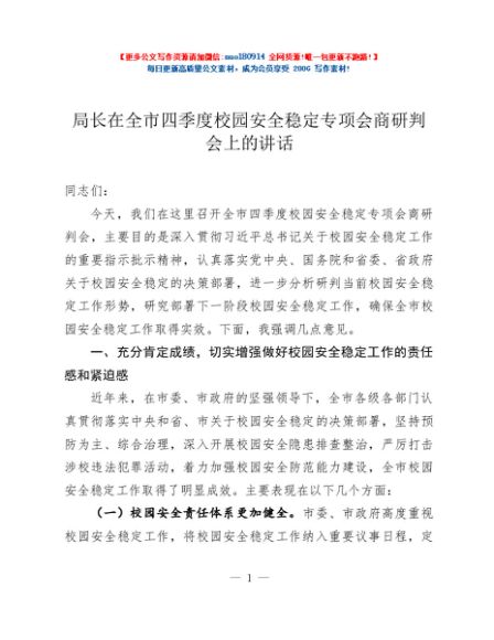 / 局长在全市四季度校园安全稳定专项会商研判会上的讲话