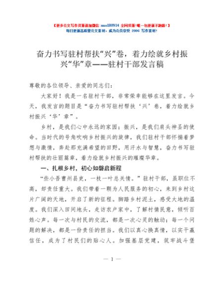 奋力书写驻村帮扶“兴”卷,着力绘就乡村振兴“华”章——驻村干部发言稿