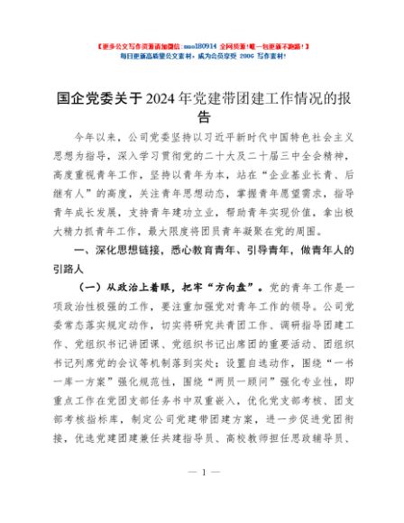 / 国企党委关于2024年党建带团建工作情况的报告