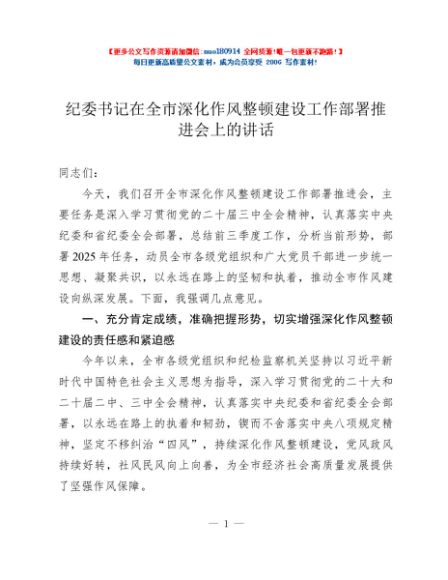 / 纪委书记在全市深化作风整顿建设工作部署推进会上的讲话