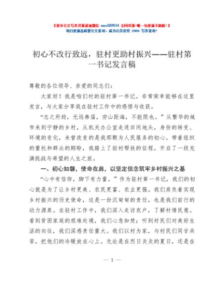 / 初心不改行致远,驻村更助村振兴——驻村第一书记发言稿