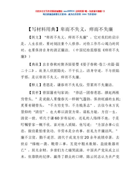 【写材料用典】卑而不失义,瘁而不失廉