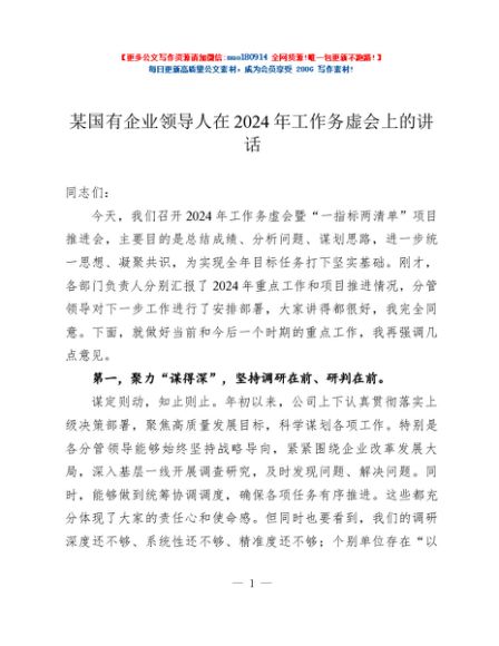 / 某国有企业领导人在2024年工作务虚会上的讲话