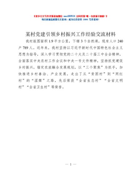 / 某村党建引领乡村振兴工作经验交流材料