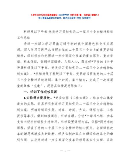 / 科级及以下干部:党员学习贯彻党的二十届三中全会精神培训工作总结