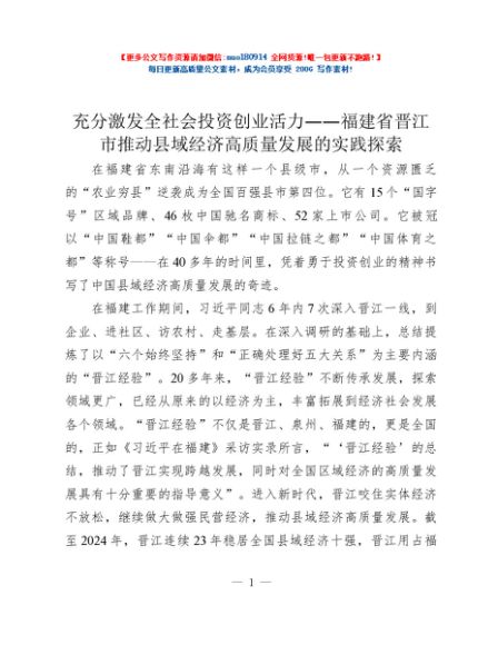 / 充分激发全社会投资创业活力——福建省晋江市推动县域经济高质量发展的实践探索