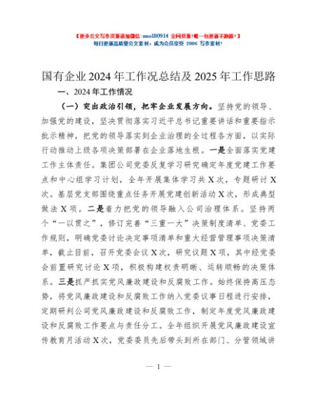 / 国有企业2024年工作况总结及2025年工作思路