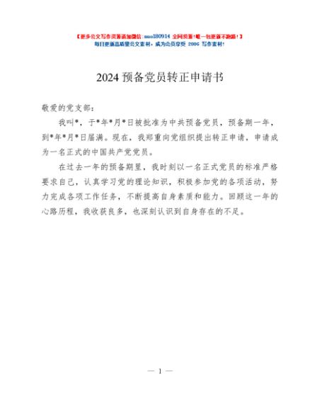 / 2024预备党员转正申请书