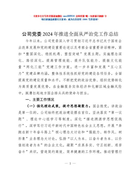 / 公司党委2024年推进全面从严治党工作总结