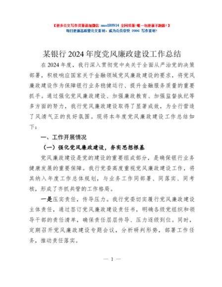 / 某银行2024年度党风廉政建设工作总结
