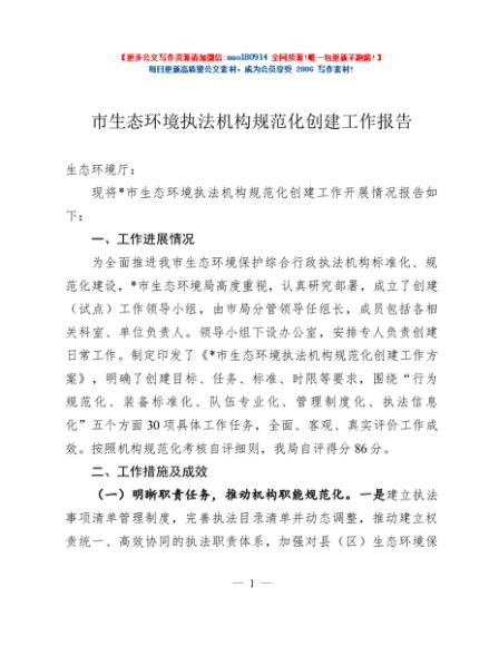 / 市生态环境执法机构规范化创建工作报告