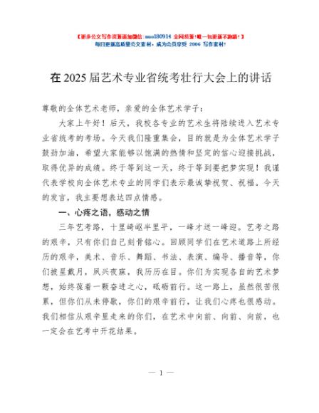 / 在2025届艺术专业省统考壮行大会上的讲话