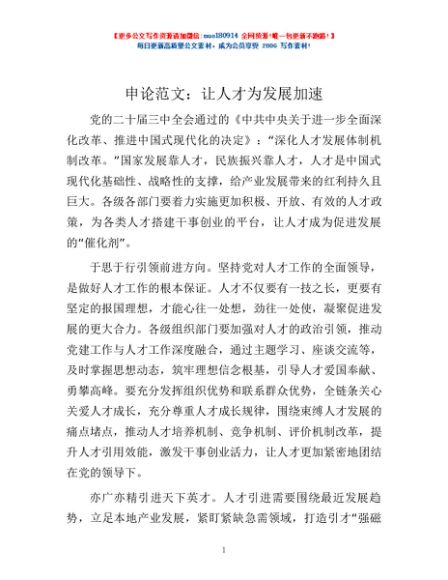 / 申论范文:让人才为发展加速
