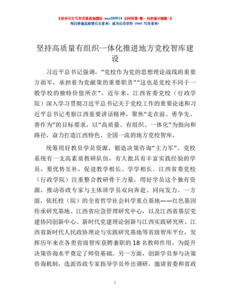/ 坚持高质量有组织一体化推进地方党校智库建设