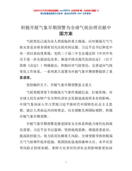 / 积极开展气象早期预警为全球气候治理贡献中国方案