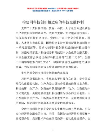 / 构建同科技创新相适应的科技金融体制