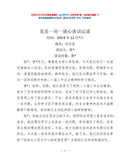 / 党员一对一谈心谈话记录