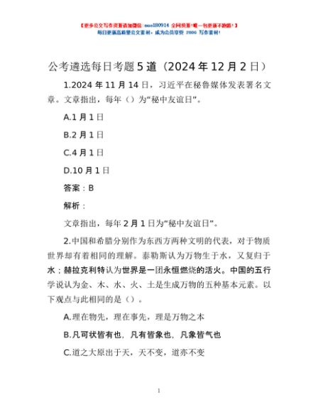 / 公考遴选每日考题5道(2024年12月2日)