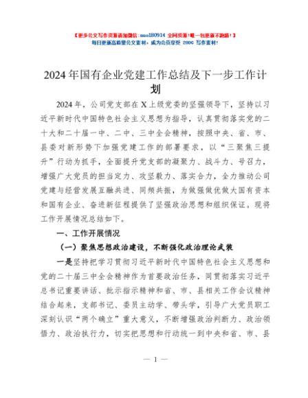/ 2024年国有企业党建工作总结及下一步工作计划