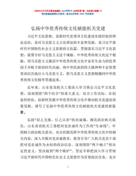 弘扬中华优秀传统文化赋能机关党建