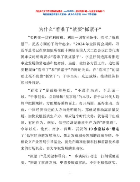 为什么“看准了”就要“抓紧干”