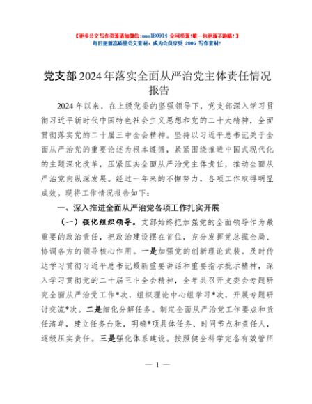 / 党支部2024年落实全面从严治党主体责任情况报告