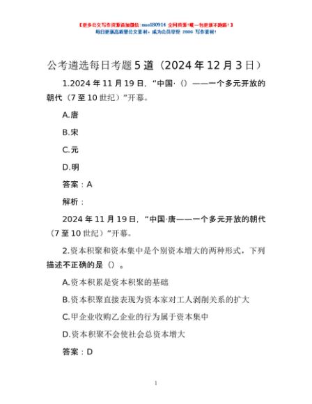 / 公考遴选每日考题5道(2024年12月3日)
