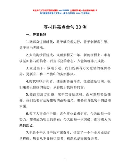 / 写材料亮点金句30例