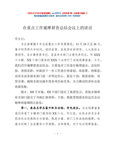 / 在重点工作观摩督查总结会议上的讲话