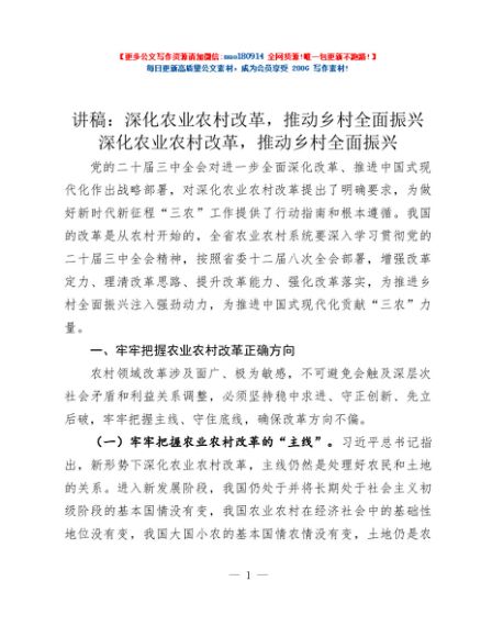 / 讲稿:深化农业农村改革,推动乡村全面振兴