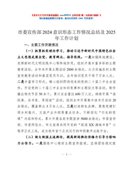 / 市委宣传部2024意识形态工作情况总结及2025年工作计划