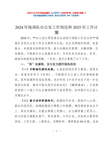 / 2024年地调队办公室工作情况和2025年工作计划