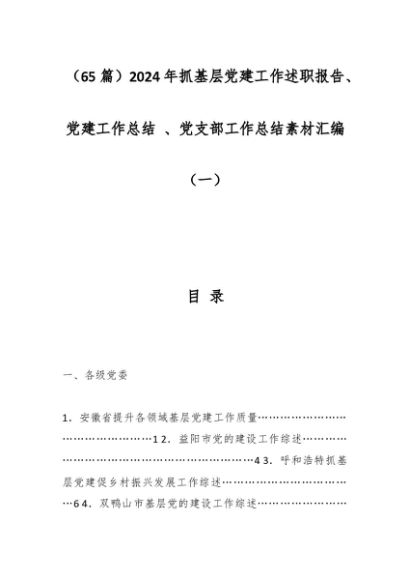 / (65篇)2024年抓基层党建工作述职报告、党建工作总结 、党支部工作总结素材汇编(一)